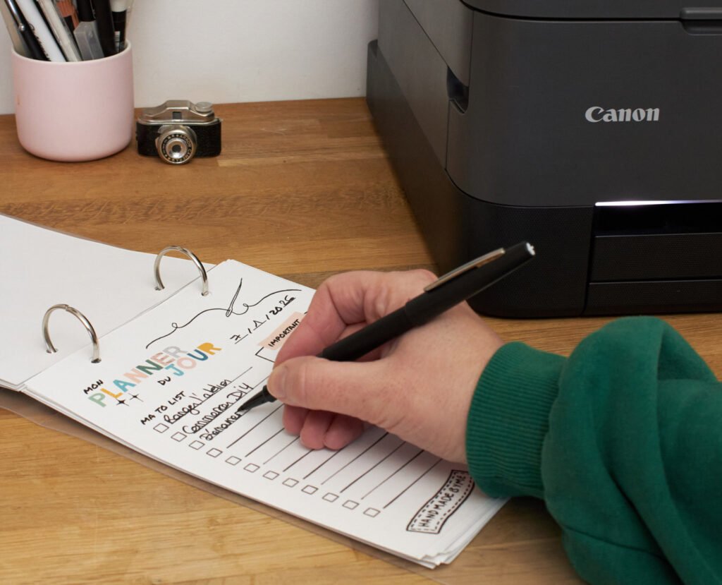 Et donc ce projet a enfin vu le jour, grâce à la confiance de Canon qui m’a suivi dans cette idée de créer un agenda créatif à imprimer, qui s’adapte à tous mes besoins … et avec un peu de chance aux vôtres. J’ai essayé d’en faire un outil simple, imprimable, modulable, qui sert la créativité au lieu de la contraindre. Un compagnon pour poser ses idées, suivre ses projets, alléger sa charge mentale… et créer avec plus de plaisir.